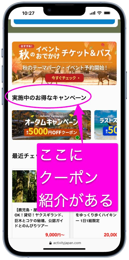 それでは次は、アクティビティジャパンでのクーポンの利用方法について説明します。