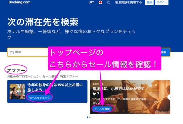 ということで、まずは、今すぐブッキングドットコムを「お得に予約する方法」や「セール・キャンペーン」情報を一覧でご案内します。