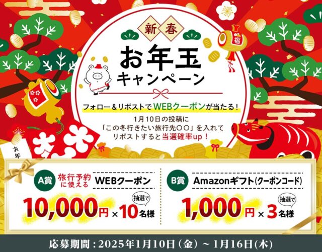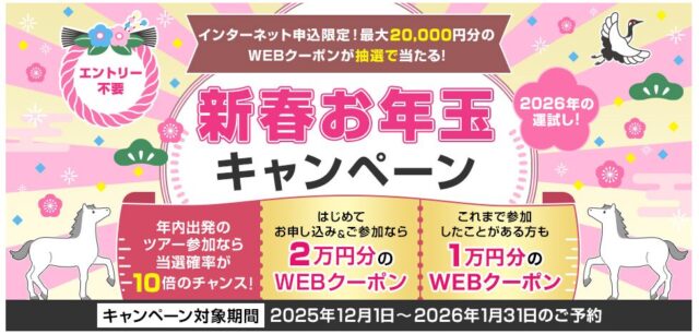 クラブツーリズムでは2025年12月1日より「新春お年玉キャンペーン」を開催しています。