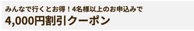 【国内】4名様以上4,000円割引!HISクーポンコード