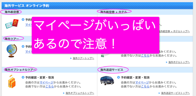 - 海外航空券・海外ツアー・海外ホテルなど:海外オンライン会員