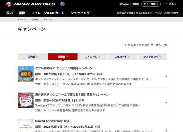 ちなみに海外JALパックも海外JALダイナミックパッケージツアーも、どちらもセール対象だから、JAL海外割引クーポンを利用してお得に予約しよう!