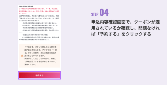 ※注意点は、クーポンを獲得してそのまま予約まで完了することです。