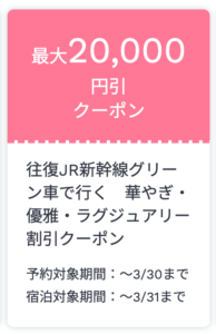 【往復JR新幹線グリーン車】最大20,000円JTB割引クーポンコード