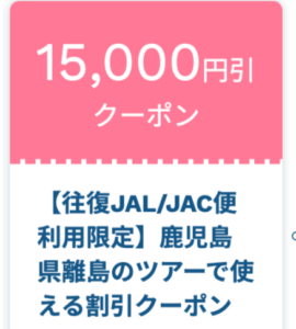 もし屋久島へJTBを利用して旅行するなら、上記でもご案内しましたJAL利用のダイナミックパッケージがおすすめです。2026日2月28日までの期間限定で15000円の高額クーポンが配布されています。
