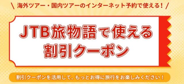 JTBのツアーや宿泊、沖縄ツアーや北海道ツアーなどを予約する際に割引適用できる割引クーポンのことです。