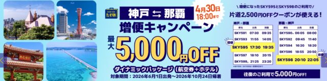 神戸⇔那覇 増便キャンペーン(4/6〜4/30)クーポンコードあり