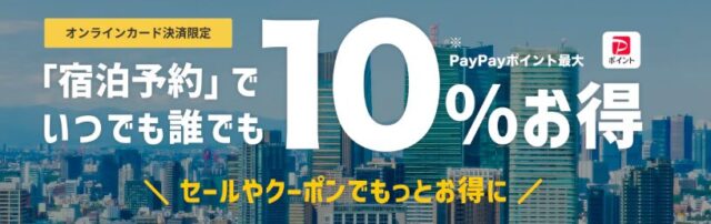- 特典例: 対象の宿泊施設が、オンラインカード決済で実質10%以上お得になることがあります。(基本の10%ポイント付与+セール特典)ヤフートラベルのセールの最新情報→